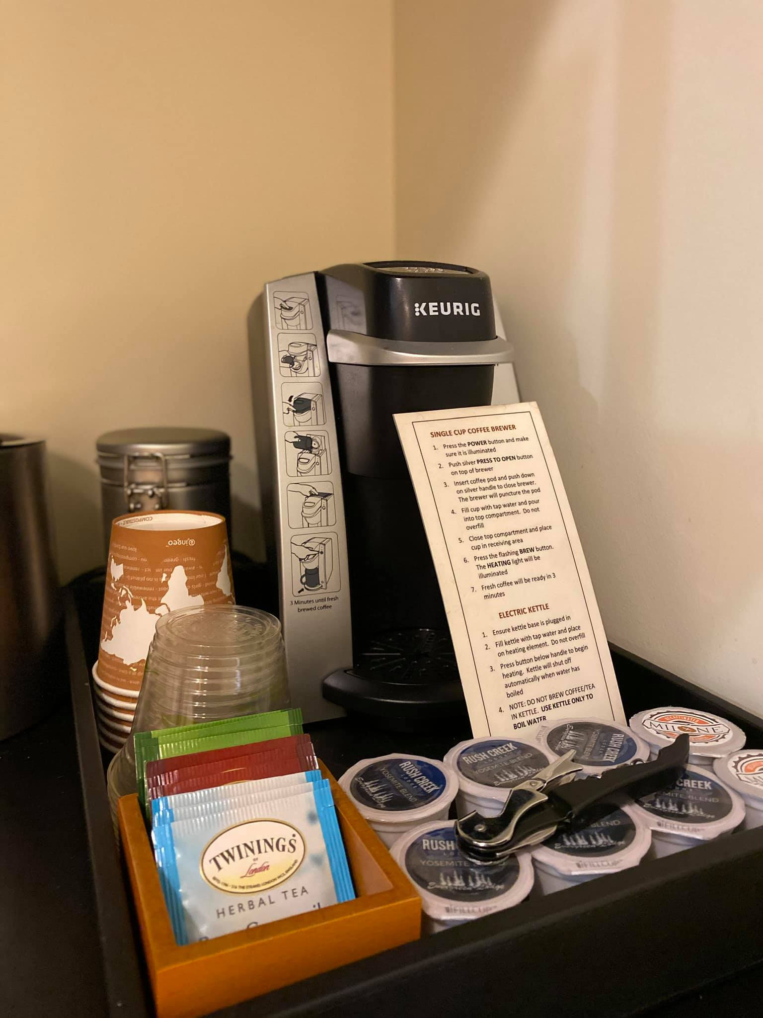 The lobby is quaint with a general store inside with a coffee shop, prepackaged food and drink, merchandise, and souvenir options!